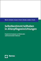 Christian Bleck, Laura Schultz, Ina Conen, Timm Frerk, Stefanie Henke, Simone Leiber, Harry Fuchs Selbstbestimmt teilhaben in Altenpflege-einrichtungen Empirische Analysen zu fördernden und hemmenden Faktoren 1. Auflage 2020, ISBN print: 978-3-8487-6709-0, ISBN online: 978-3-7489-0766-4.